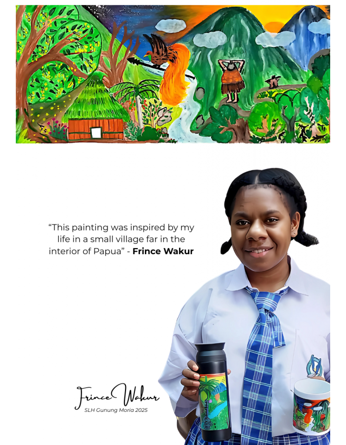 Lukisan ini dibuat oleh: Iam Cello Sambo Paku, Kelas 11 Sekolah Lentera Harapan Toraja.